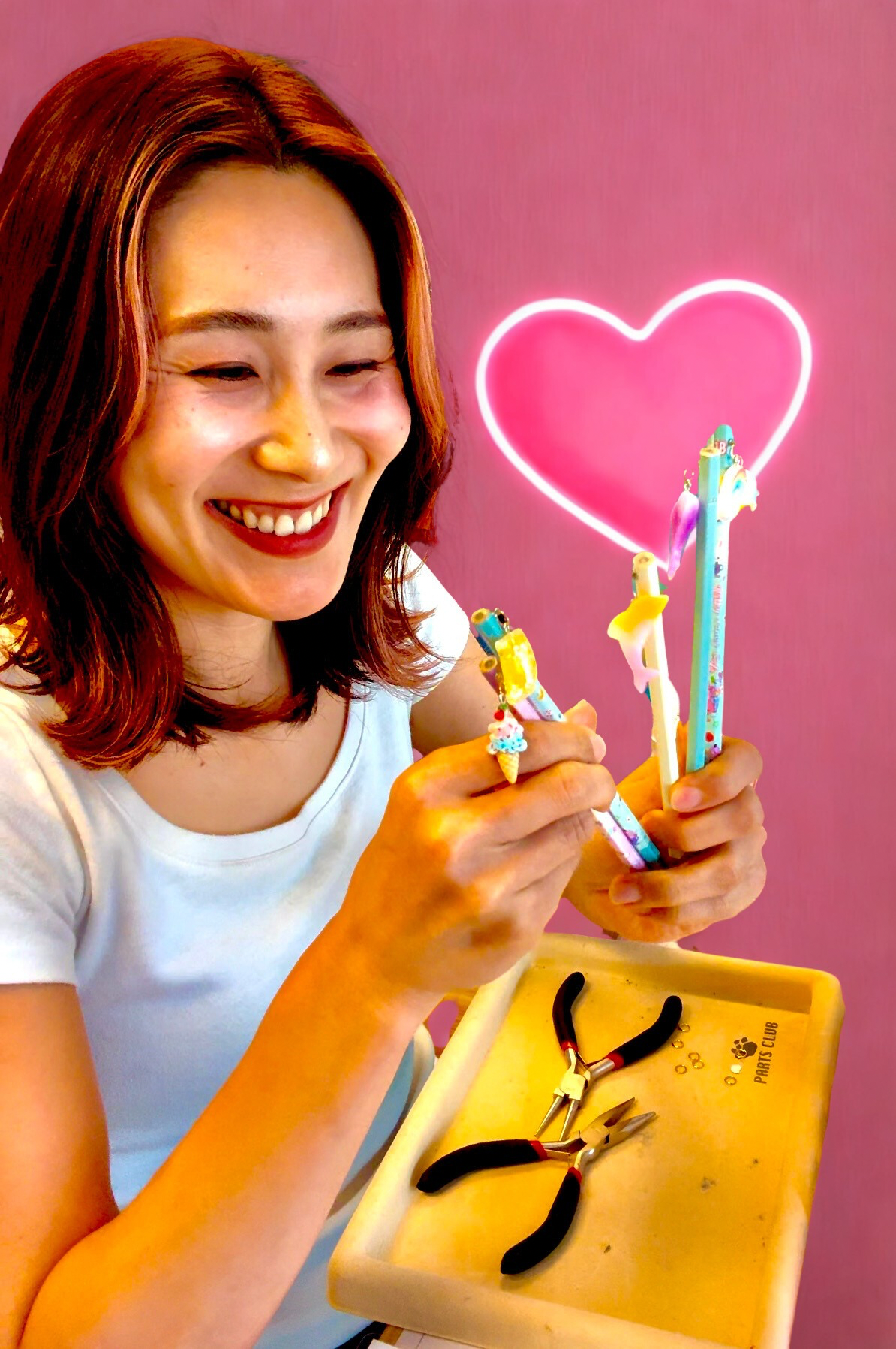 今後考えているのは、ビーズでアクセサリー作りや、キラキラかわいいシール作り、デコアイテムづくりなど、ピンク、可愛い、カラフル、女の子、うきうきな物づくりを考えています