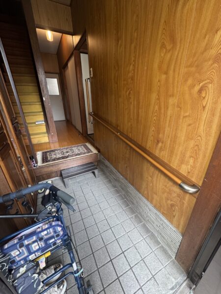 玄関の外と中の手すりのご依頼でした 90代のお客様。転倒により怪我をされたため介護保険を使っての手すり工事でした #住宅改修 #マツ六 #フリーアールレール