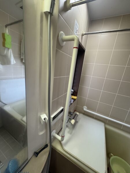 介護保険を使った住宅改修です 既に住宅の中は住宅改修が終わっておりましたので、室内手すりの高さと合わせて設置いたしました 高さに違和感が出ないよう、靴底の厚みも考慮しました #住宅改修#介護保険#ヤザキ