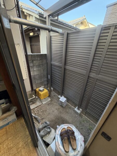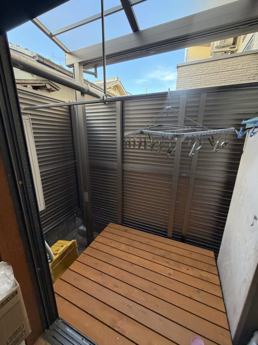 掃き出し窓と外をつなぐデッキを設置いたしました 毎日の家事が安心して行えるようになりました 目隠しについてはフェンスを立てました。